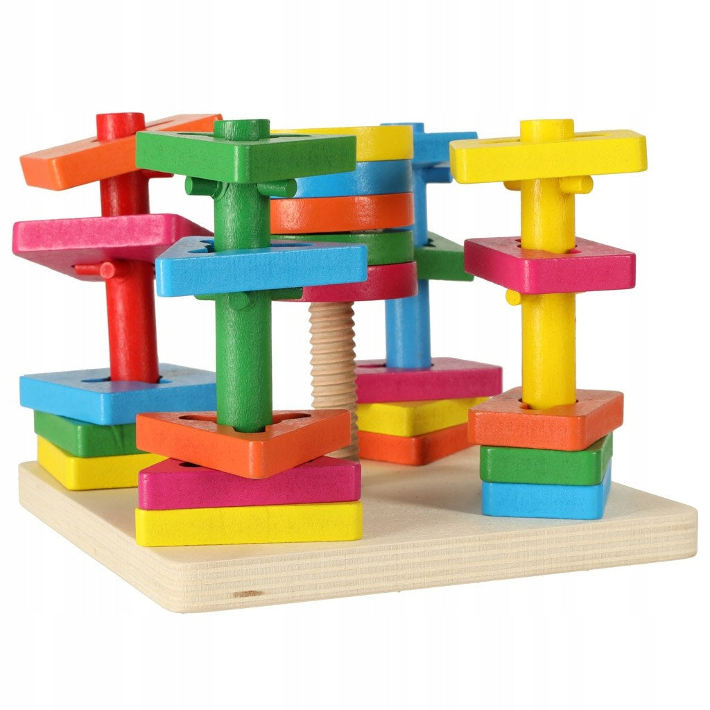 Doskonała zabawka edukacyjna, w całości wykonana z drewna.