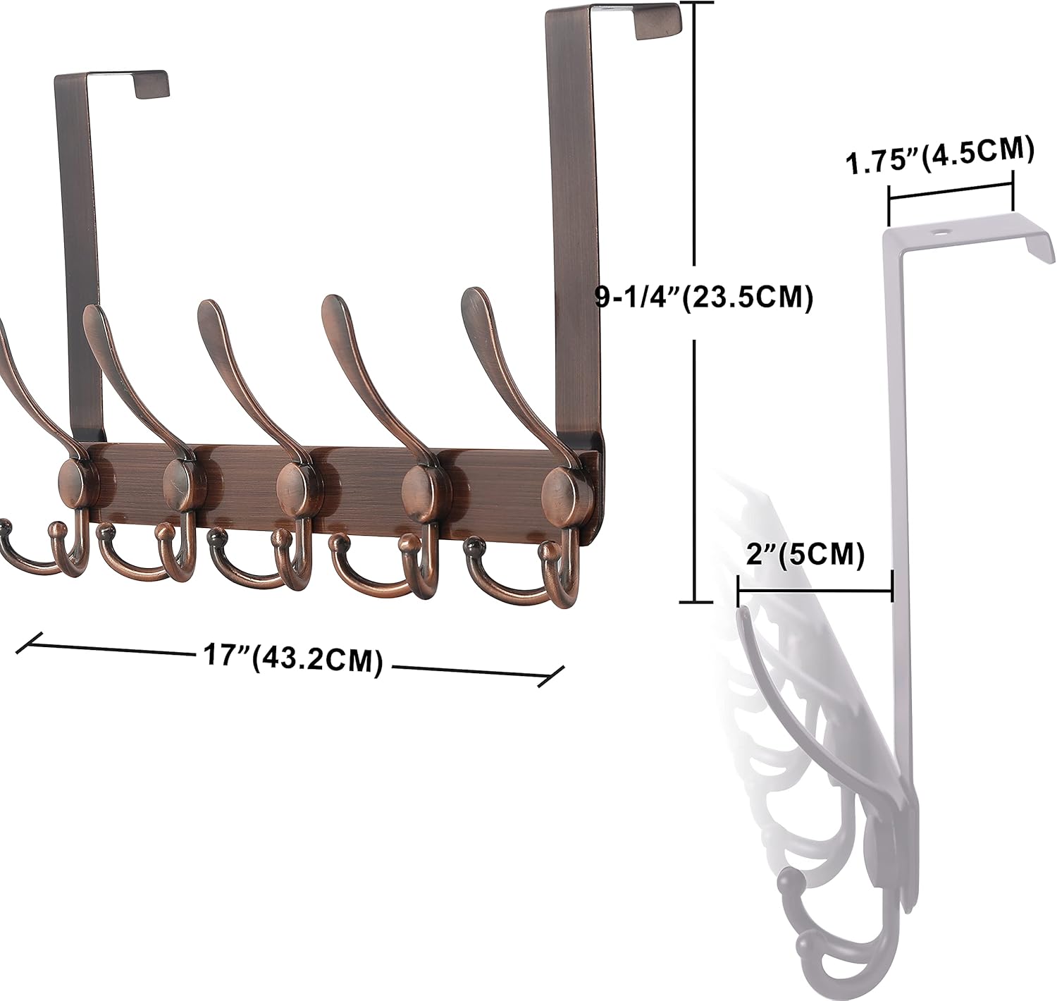 Dseap Wieszak na haczyki nad drzwiami – 5 haczyków Tri, wytrzymały wieszak na ręczniki nad drzwiami, wieszak na ubrania, kapelusz, ręcznik, czerwona antyczna miedź, 2 opakowania