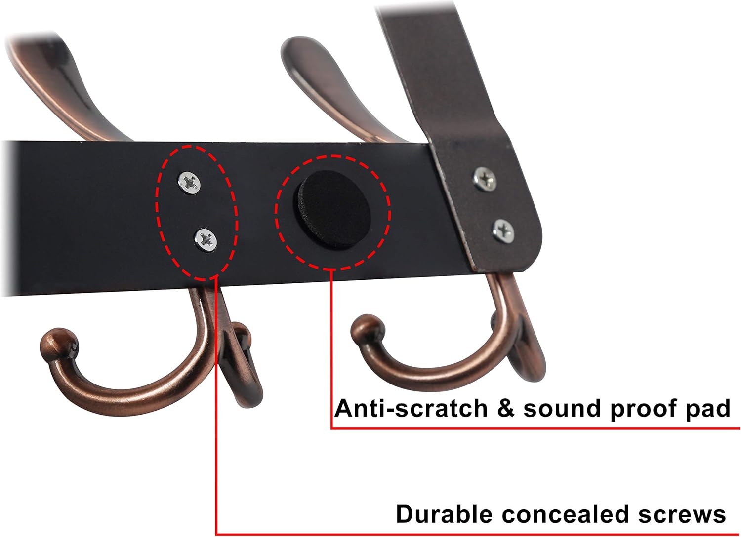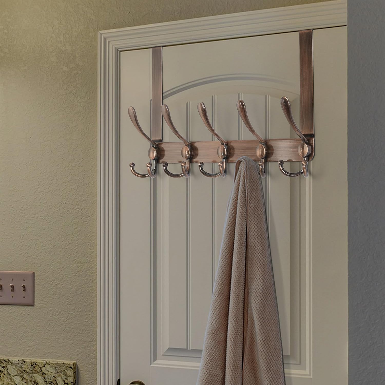 - 3. Wytrzymały wieszak na drzwi, wbudowany ze stali nierdzewnej, kolor czerwony antyczny miedź.