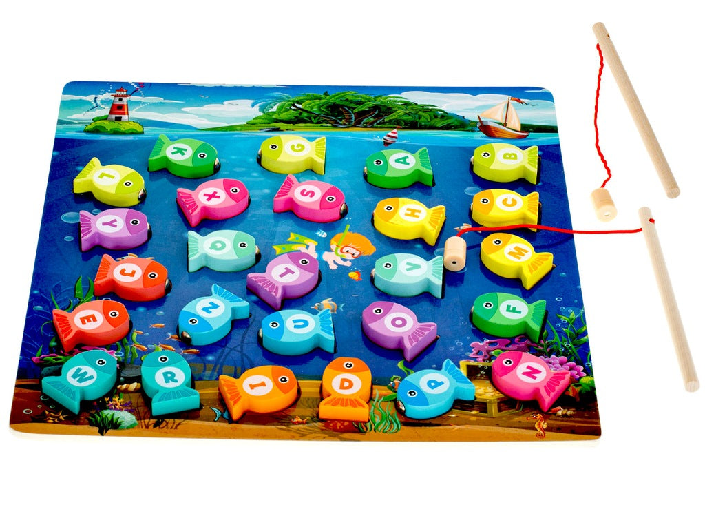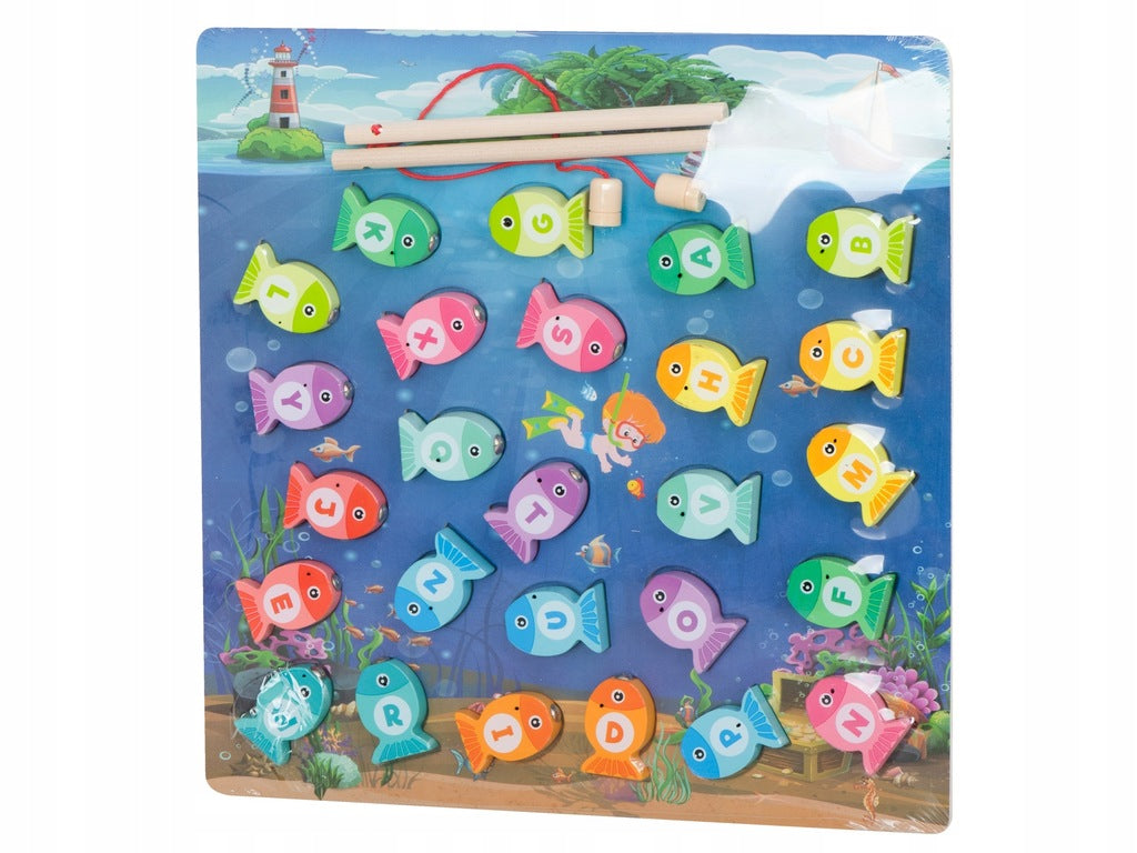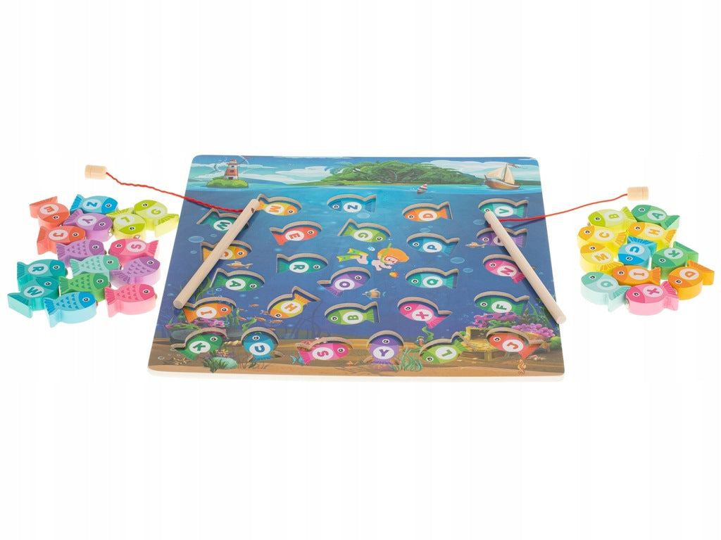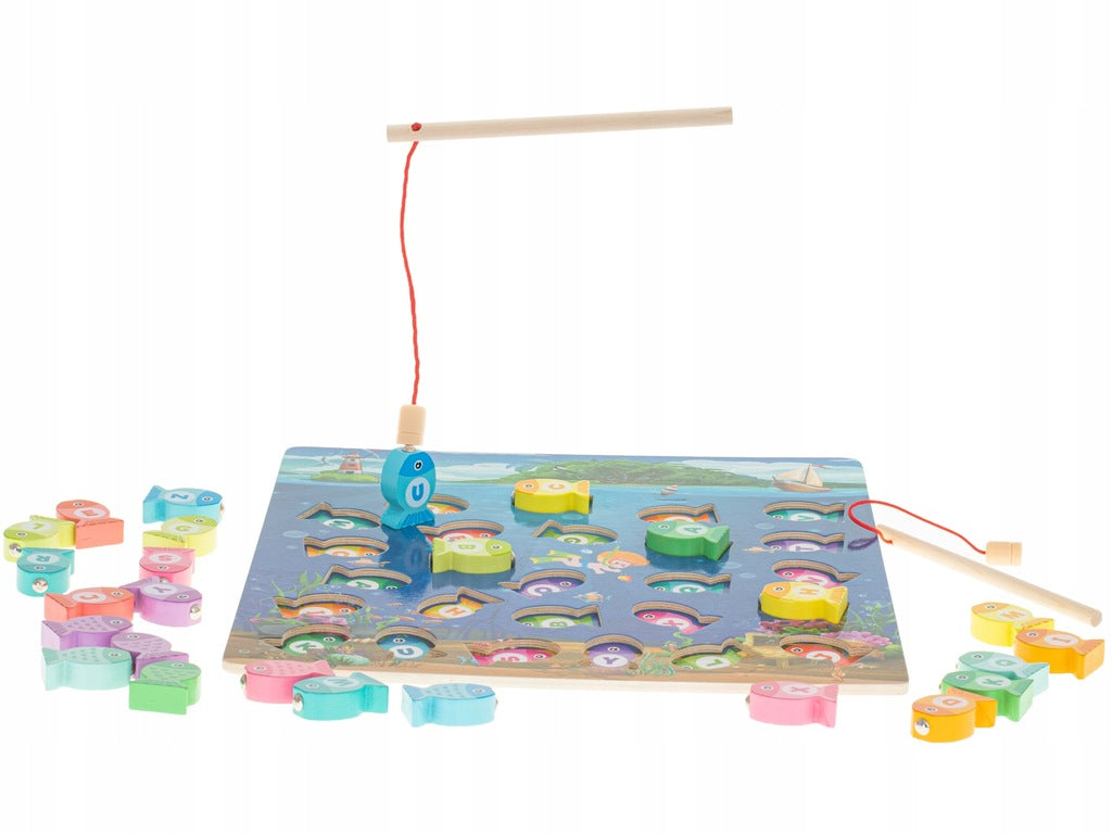 Puzzle drewniane magnetyczne łowienie rybek literk