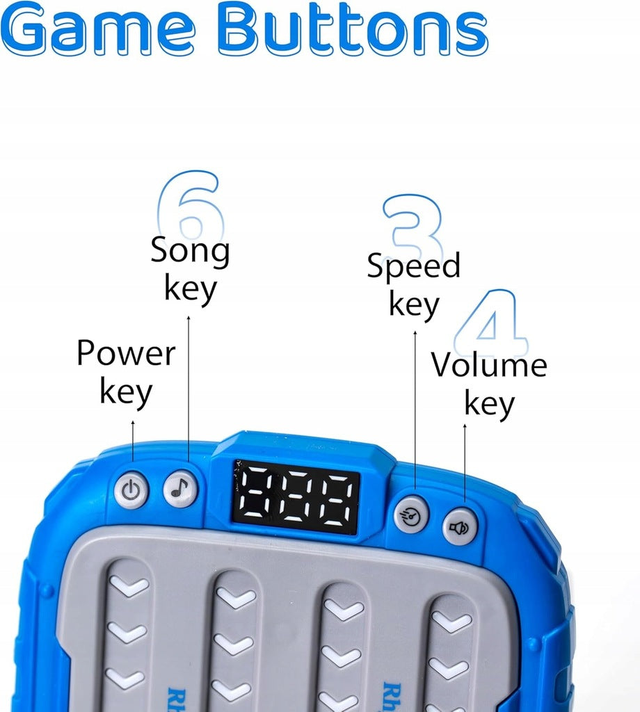 - Poprawia koordynację i umiejętności motoryczne Ta gra rytmiczna, wykonana z bezpiecznych dla dzieci materiałów, poprawia koordynację ręka-oko i umiejętności motoryczne dzięki interaktywnym światłom LED. Idealna do gry w pojedynkę lub przyjacielskiej rywalizacji dla dzieci w wieku od 3 do 12 lat.