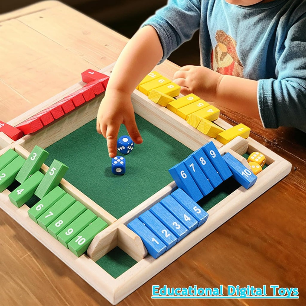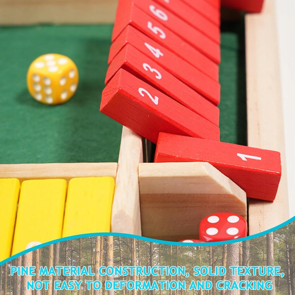 【Pudełko dla maksymalnie 4 graczy】Te gry planszowe Shut-the-Box oferują teraz miejsce dla maksymalnie 4 graczy. Posiada 10 drewnianych płytek z sitodrukiem z każdej , aby umożliwić więcej kombinacji liczb.