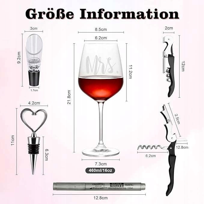 - ????Idealny zestaw: W każdym zestawie znajdują się dwie miarki kielichowe, korkociąg 3 w 1, szybki dekanter do wina, korek w kształcie serca i dwa srebrne markery ślubne. Nie musisz martwić się o zarysowania, ponieważ w każdym pudełku znajdziesz bardzo grubą watę perłową, którą po prostu przyklejasz do okularów. Ten idealny zestaw z pewnością zapewni Ci przyjemne doznania podczas picia.