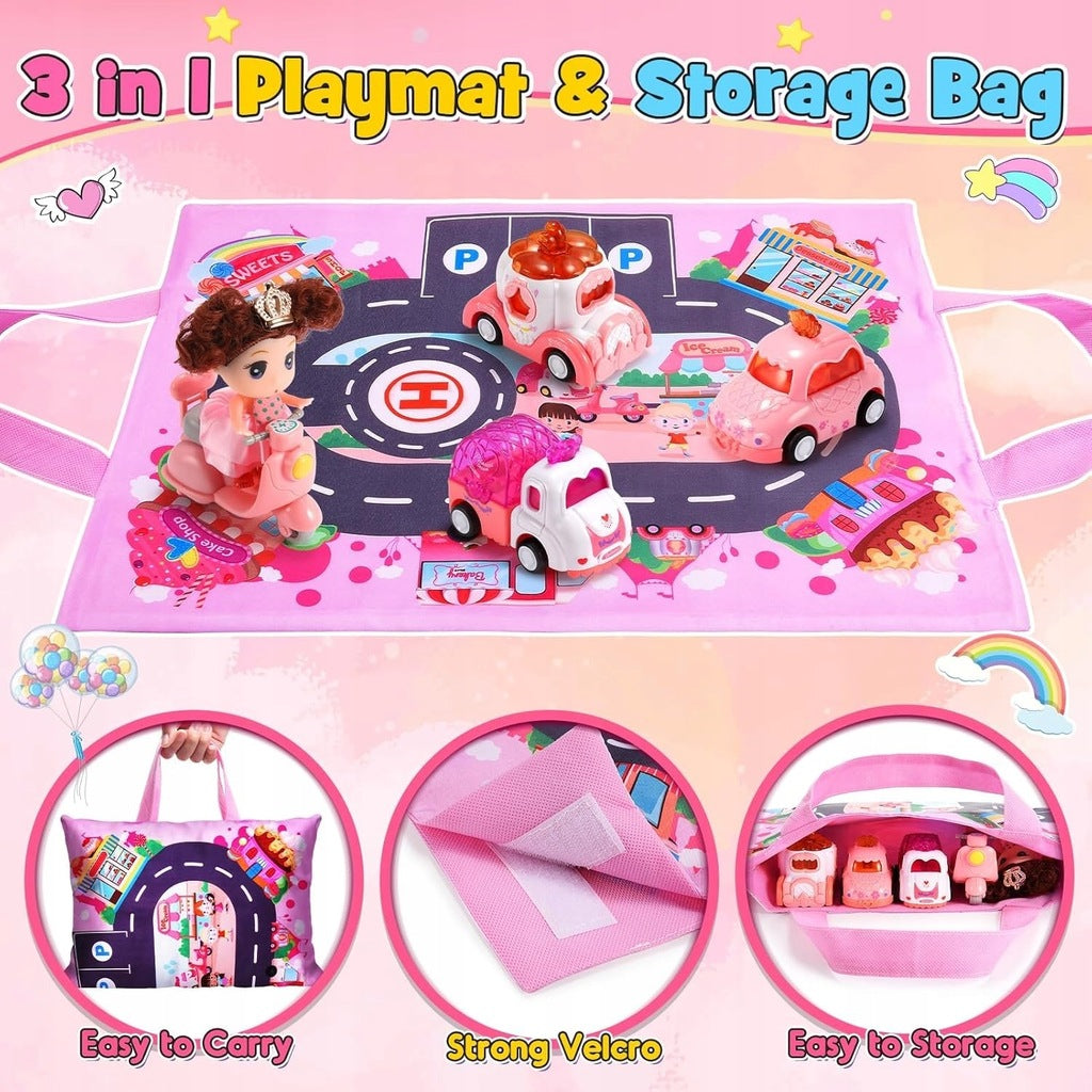 Mata z samochodzikami z napędem Pull Back dla dziewczynek Składany Zestaw