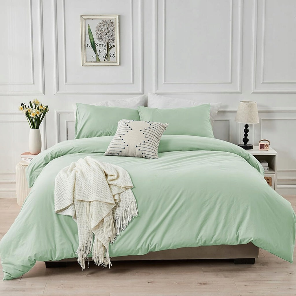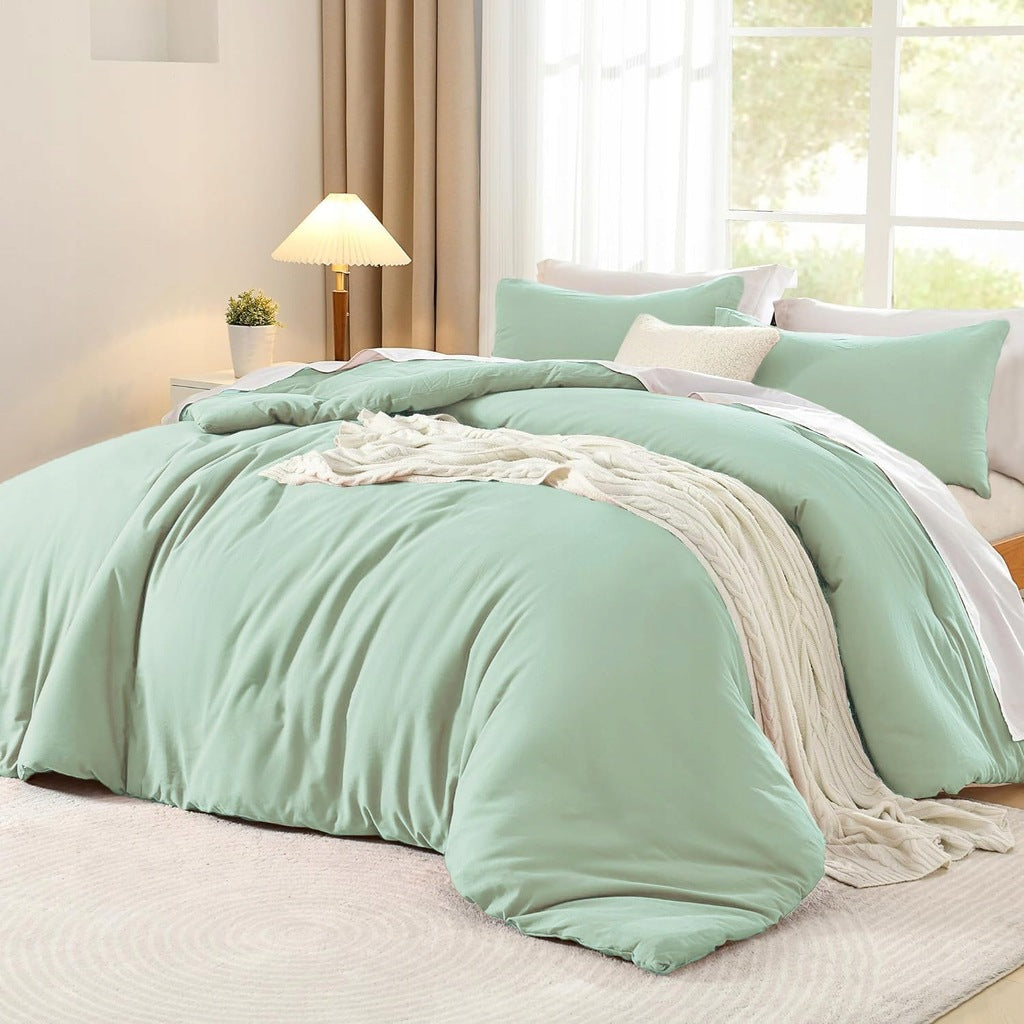 Zaprojektowany i unikalny - ten zestaw pościeli 135 x 200 cm ma jednokolorowy design, a pomarszczona tekstura w modnym kolorze zapewnia elegancki, prosty i stylowy wygląd w Twojej sypialni. Ten komplet pościeli pasuje idealnie do każdego pomieszczenia.