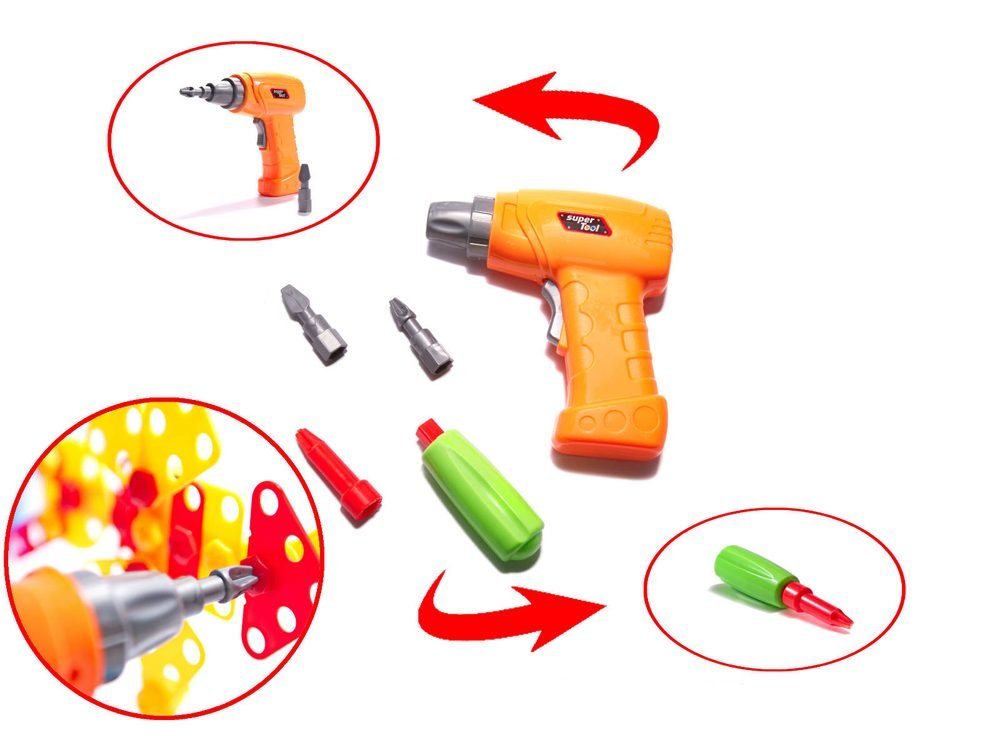 Rewelacyjny zestaw, który pewnością zajmie malucha na długie godziny i dostarczy mu mnóstwo fascynującej zabawy. Po włożeniu baterii i uruchomieniu wkrętarki, kreci się jak prawdziwe urządzenie. Pozwól dziecku wczuć się w rolę prawdziwego konstruktora.