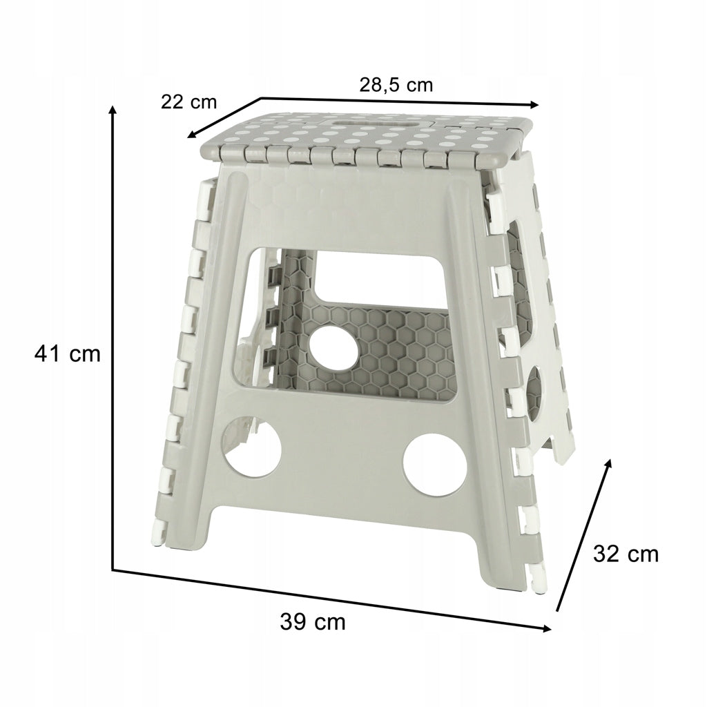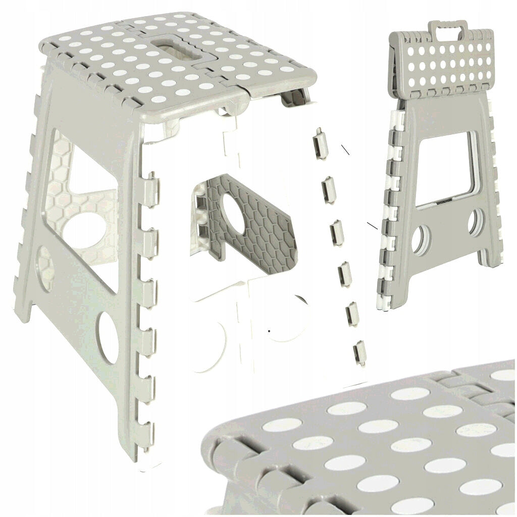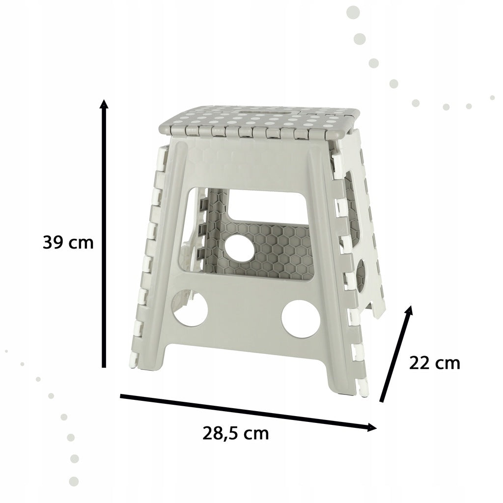 STOŁEK TABORET SKŁADANY ANTYPOŚLIZGOWY WYSOKI 39CM JASNY SZARY