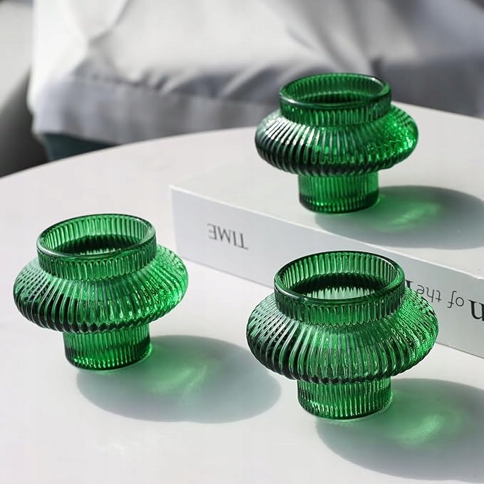 Świeczniki Szklane Podstawki Pod Świeczki Dekoracja Stołu Zielone 6 Sztuk