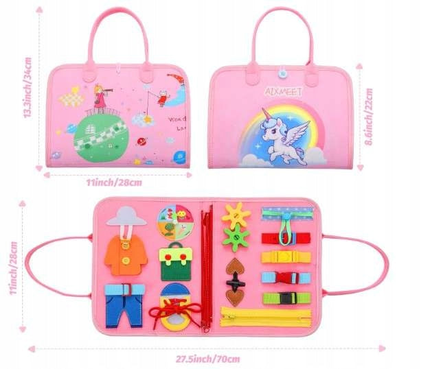 - PRZENOŚNE ZABAWKI DLA MALUCHÓW: To idealna zabawka dla małych chłopców i dziewczynek, która zapewni rozrywkę małym dzieciom. Tablica z uchwytem, przenośna, łatwa do przenoszenia przez maluchy i elastyczna, dzięki czemu zmieści się w większości toreb na pieluchy lub szkolnych. Wspaniała tablica sensoryczna dla maluchów, która zajmie je w samochodzie, samolocie, w podróży lub w miejscach, w których wymagana jest cisza. Tablica manipulacyjna to zdecydowanie idealny prezent, który nie powoduje bałaganu, hałasu ani nie spędza czasu przed ekranem.