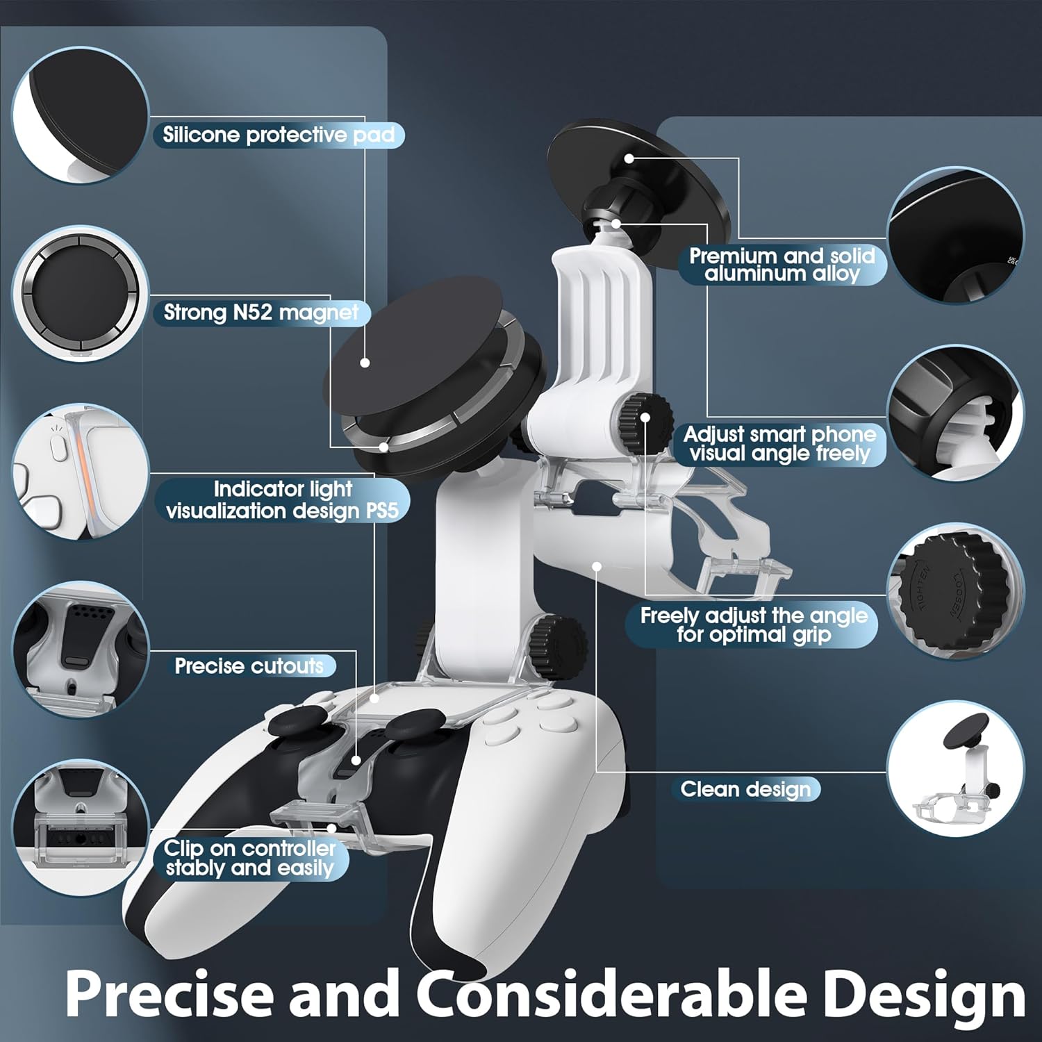 Praktyczny uchwyt do montażu telefonu na padzie PlayStation, idealny do grania w chmurze (Xbox Cloud Gaming, GeForce NOW, PS Remote Play) lub w gry mobilne.