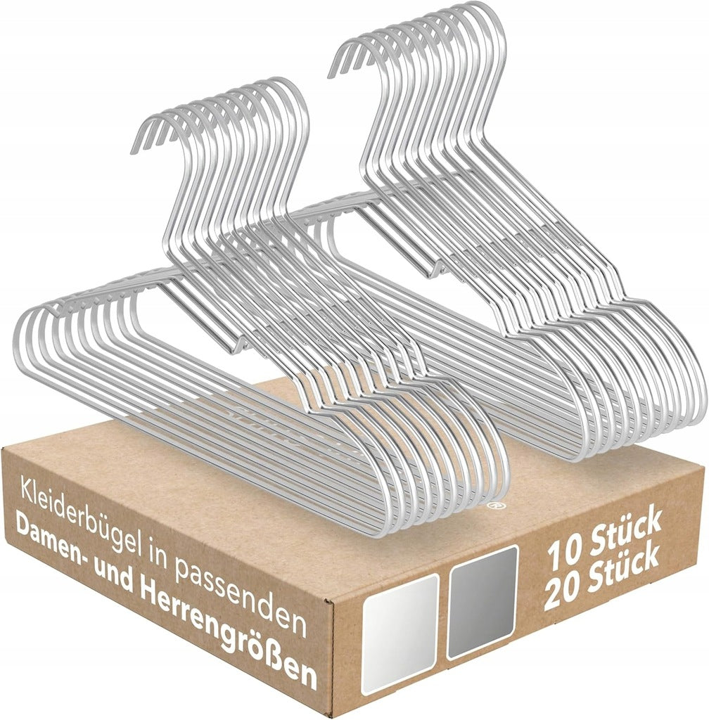 Wieszaki na ubrania metalowe pojedyncze srebrne 10 szt