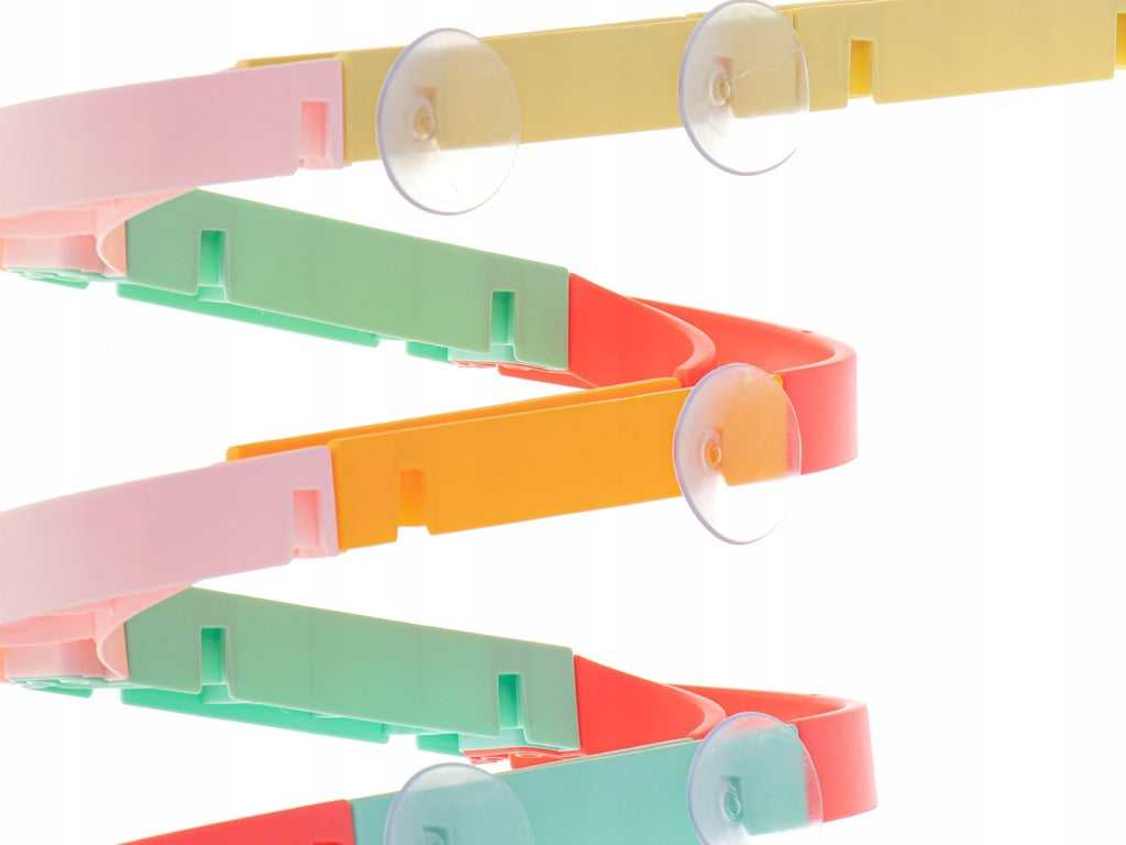 Do zabawki dołączono przyssawki, które ułatwią przymocowanie toru do glazury lub wanny.