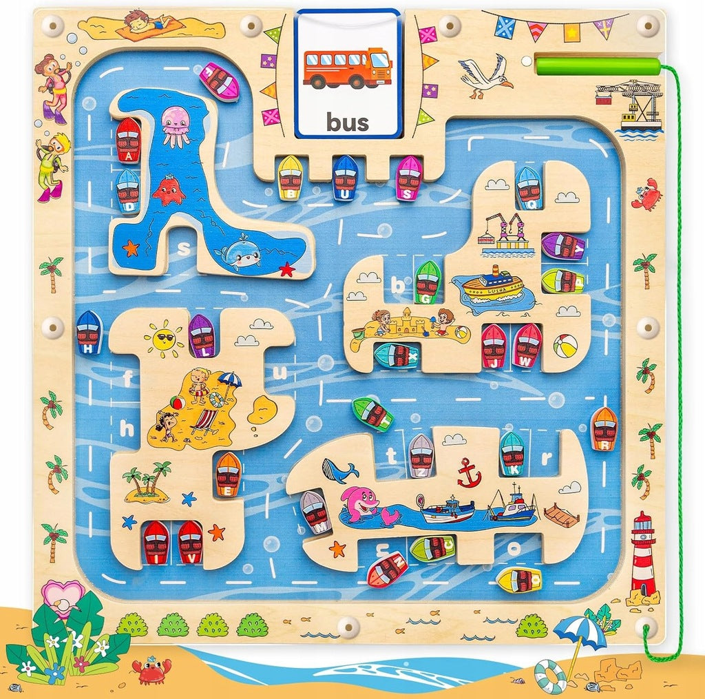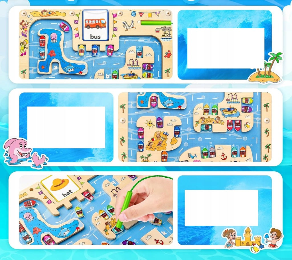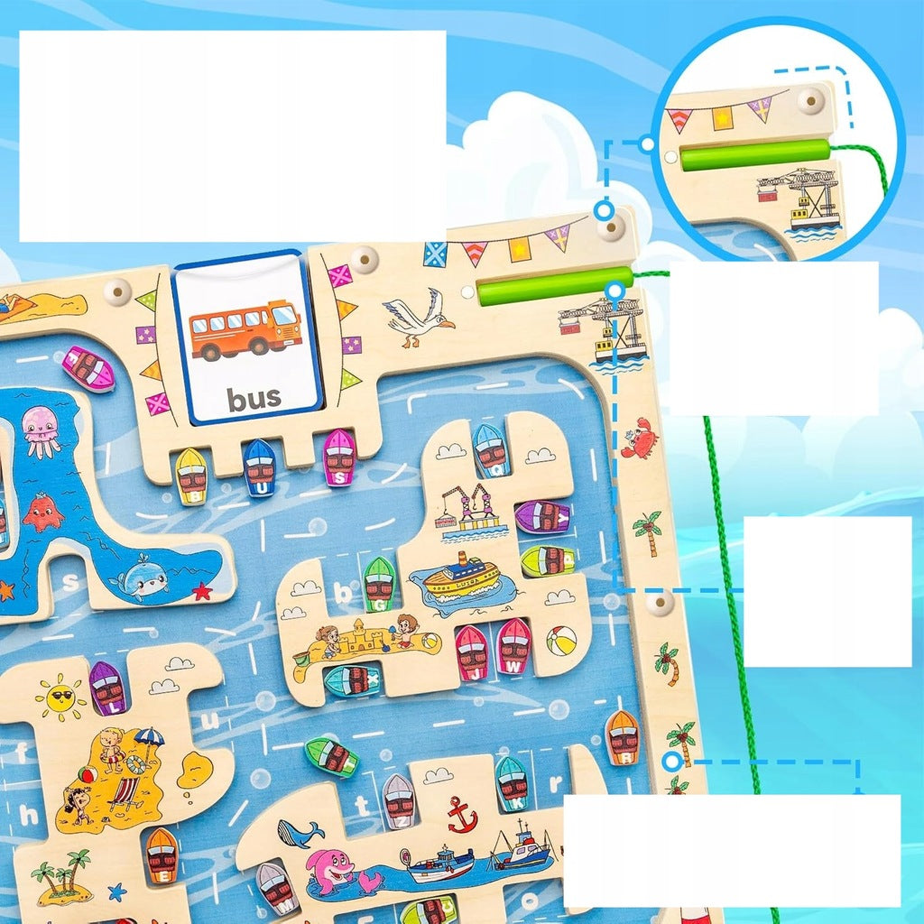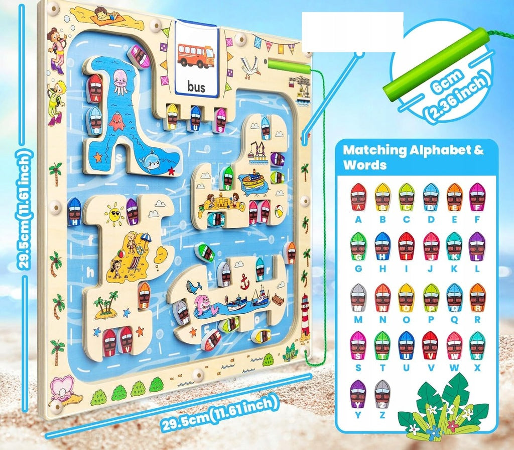 ZABAWKA MAGNETYCZNA LABIRYNT DLA DZIECI SŁÓWKA I LITERY NAUKA ALFABETU 36m+