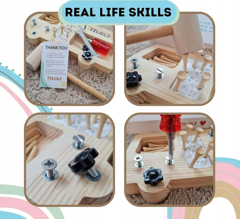 Zestaw warsztatowy w stylu Montessori to idealna edukacyjna zabawka dla ciekawych świata dzieci. Dzięki różnorodnym narzędziom i elementom do skręcania, maluch rozwija zdolności manualne, wyobraźnię oraz logiczne myślenie – wszystko przez zabawę!